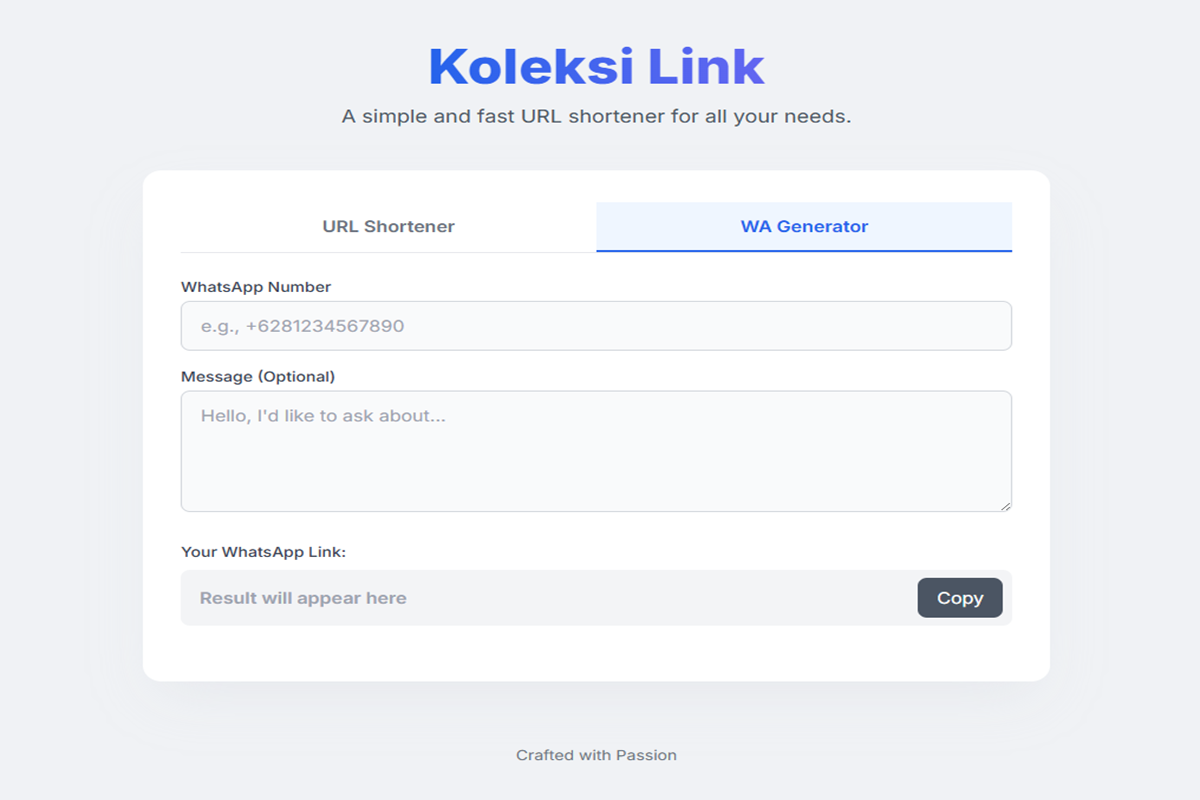 Aplikasi web pemendek URL website dan Whatsapp link generator.