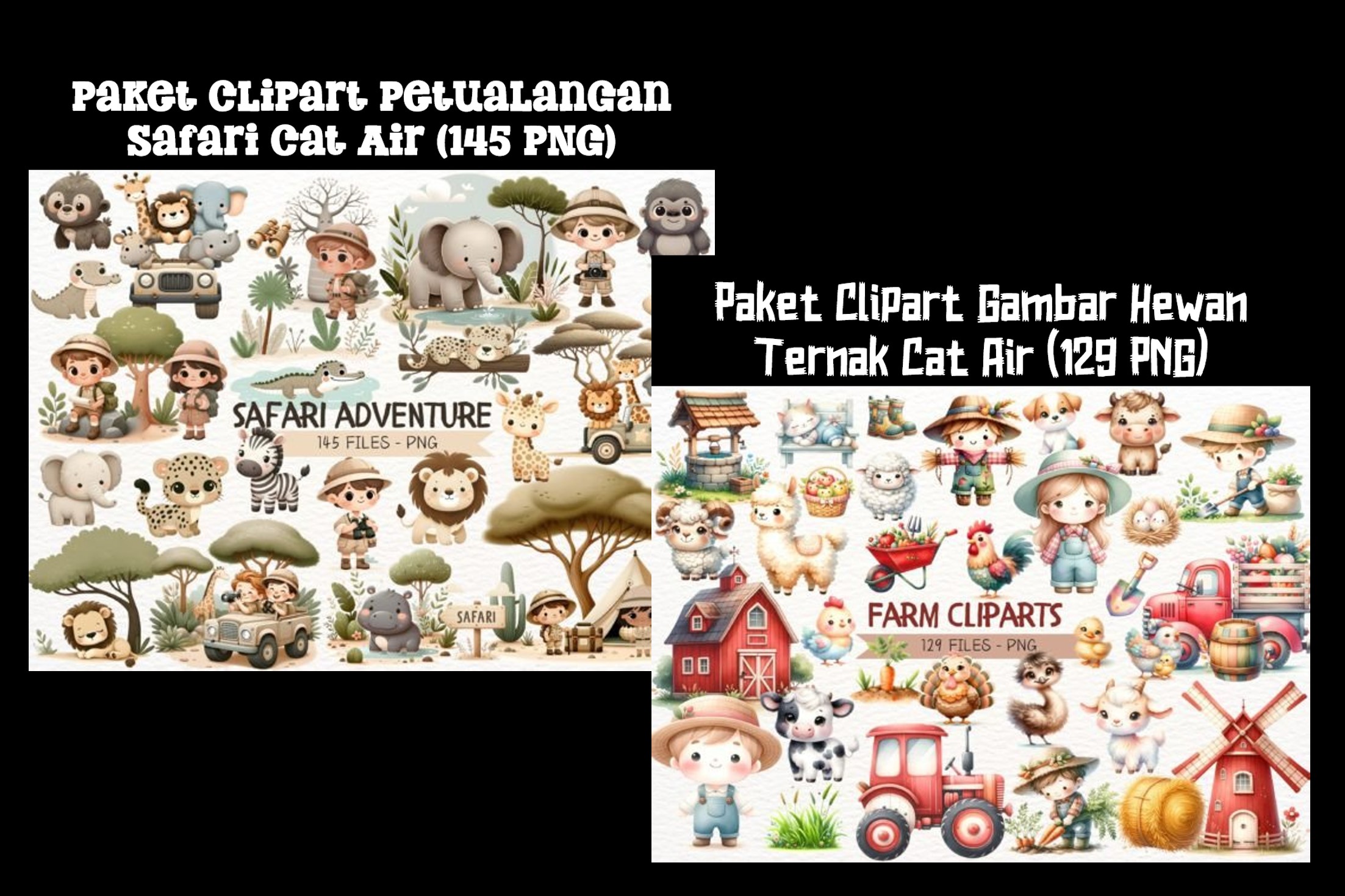 Paket Clipart Petualangan Safari Cat Air (145 PNG)