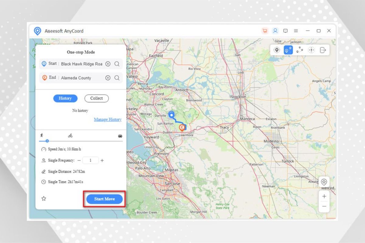 If you would like to make your Android and iPhone move along with a specific track, you can use AnyCoord too. And there are three movement modes for you, which will make the moving free and various. They respectively are One-stop Mode, Multi-stop Mode, and Joystick Mode. What's more, when you finish each move, the route record will be saved in the history, and you can get the distance of each move and check it anytime.