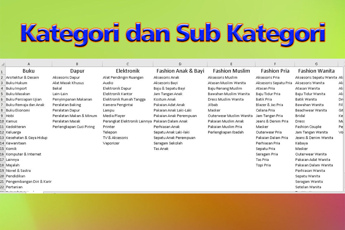 Terdapat 30 kategori dan 400 sub kategori