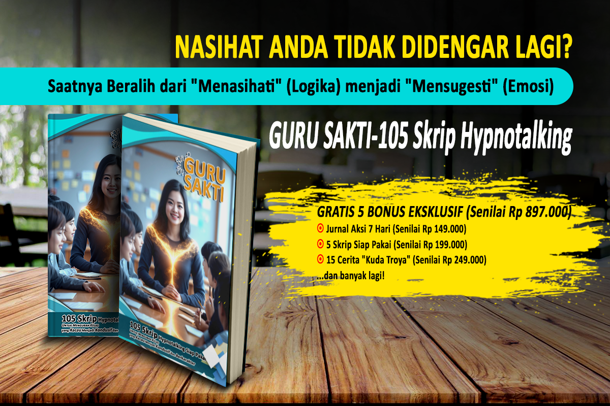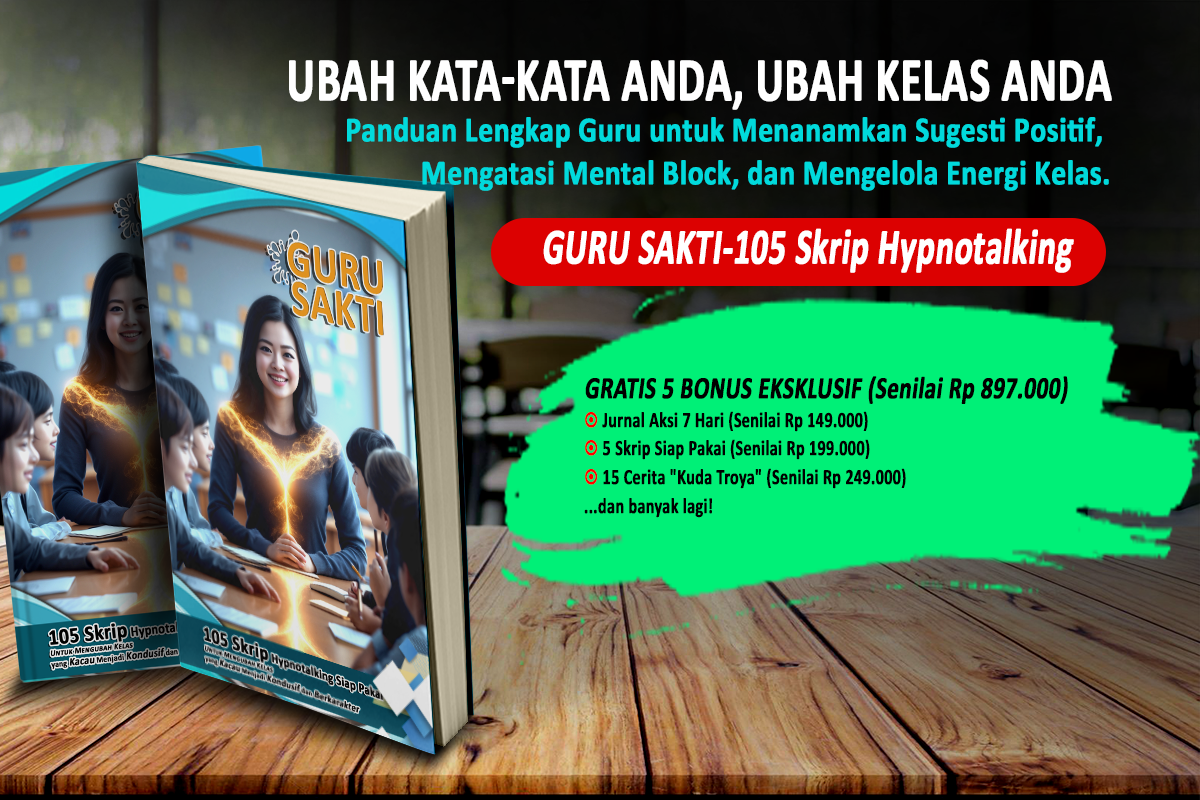 GURU SAKTI adalah Ebook Premium dan Paket Bonus berisi 105 Skrip Hypnotalking (komunikasi sugestif) yang etis dan siap pakai untuk guru.