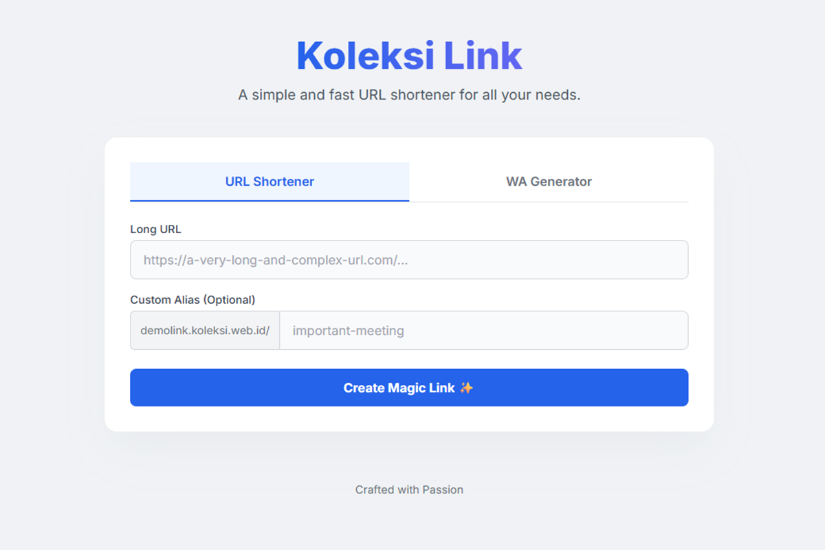 Aplikasi web pemendek URL website dan Whatsapp link generator.