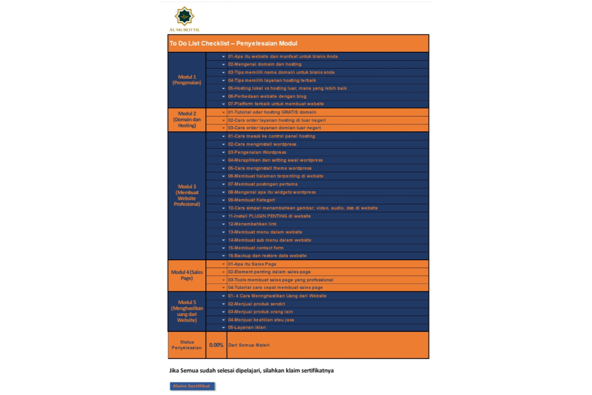 - Sertifikat Kelulusan: Dapatkan sertifikat resmi sebagai bukti keahlian Anda setelah menyelesaikan kursus ini.