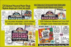 4 Bundle Halaman Mewarnai Dewasa Dengan Garis Tebal dan Mudah Vol.-2